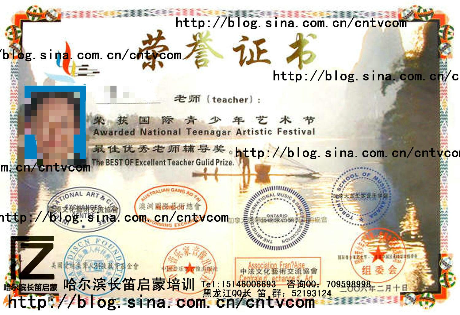 授课教师曾获2004年首届全国青少年推选大赛全国赛区金奖、2009-2010迎世博第四届乐文国际少儿艺术音乐艺术创意大赛长笛组优秀指导教师奖、艺彩*中国优秀指导教师奖、梦想*中国指导管乐长笛教师组金奖、全国艺术教育成果长笛组优秀指导教师、中国音乐学院考级优秀指导教师、2011上海音乐学院考级优秀指导教师、哈尔滨多家艺术学校客座长笛教师!乐团首席长笛!硕士学历!从事长笛教学多年!有丰富的长笛教学经验!擅长零基础启蒙教学和高级晋级教学!